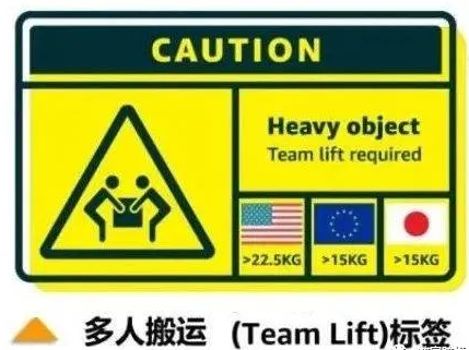 對于超過這個重量標準的貨件,亞馬遜規定,賣家必須在外箱上標注“Team Lift”標簽,也就是“多人搬運”標簽。