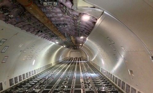 4.裝貨前,我們看看飛機(jī)內(nèi)部結(jié)構(gòu)吧,地板上有專門用來和集裝箱(集裝板)相扣的鎖止結(jié)構(gòu),防止集裝箱(集裝板)滑動(dòng):