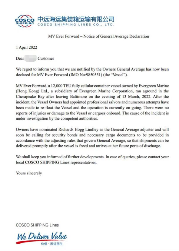 在遇到貨艙擱淺的情況下,船公司會發來通知要求我們去共同承擔海損費用,共同海損是發生海損后必然產生的結果,這是正常的。其中共同海損是由船、貨(包括不同的貨主)各方共同負擔,具體要承擔的費用是要跟貨物數量來進行比例分配。