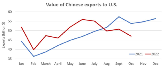 中國(guó)對(duì)美國(guó)出口同比下降14%,降幅遠(yuǎn)遠(yuǎn)大于出口總額。