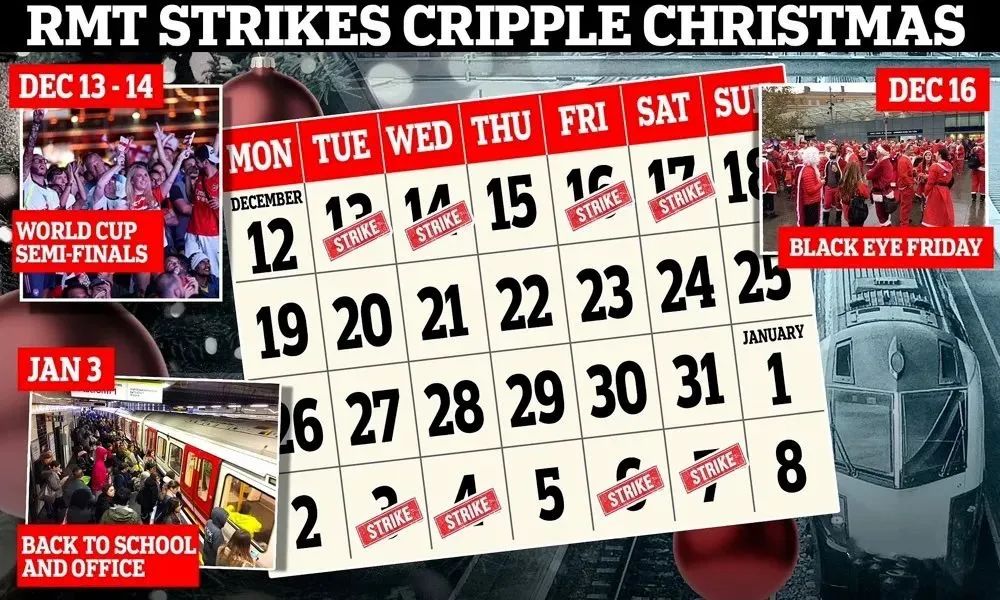 罷工前后的日子會出現交通中斷。RMT這是對下周宣布并開始罷工的鐵路工人的補充。