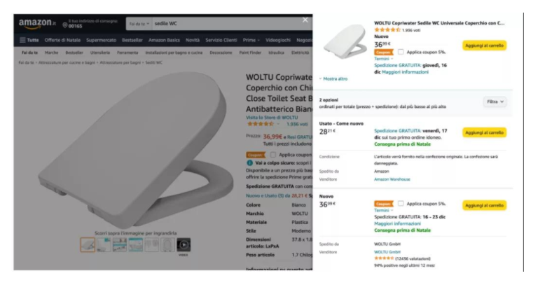 在buy box下面,有一個小盒子,上面寫著你可以從另一個賣家那里獲得它。結果,再次出現的是WOLTU GmbH(以及來自“Amazon Warehouse”的二手產品)。